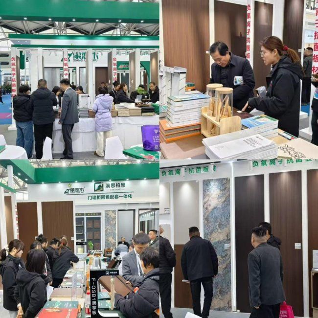 展位內(nèi),雙方聯(lián)合呈現(xiàn)的ENF級(jí)全系列飾面板成為核心亮點(diǎn),吸引大量定制企業(yè)、裝飾公司及行業(yè)專業(yè)人士駐足交流。