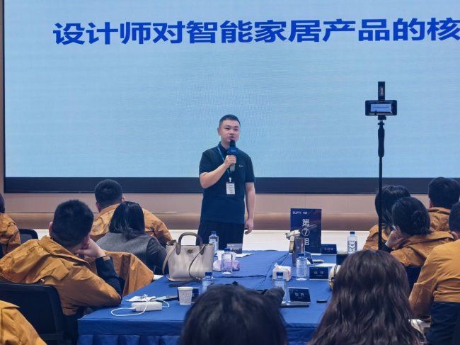 除行業(yè)趨勢與產品解析外,三峰照明賦能部經理鄭琪琨也帶來了極具實操價值的干貨分享,聚焦終端服務升級與簽單效率提升,為學員解鎖核心技能。他圍繞照明設計方案的思路、設計依據,以及智能家居設計方案的底層邏輯展開細致講解,明確當下市場已從“產品競爭”轉向“服務競爭”,管理模式革新成為終端破局的關鍵。