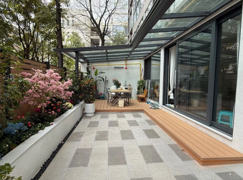 采用統(tǒng)一鋪裝方式,能在視覺上擴大空間感,尤其適合緊湊型戶型,讓戶外角落也成為家中的亮點。
