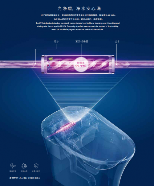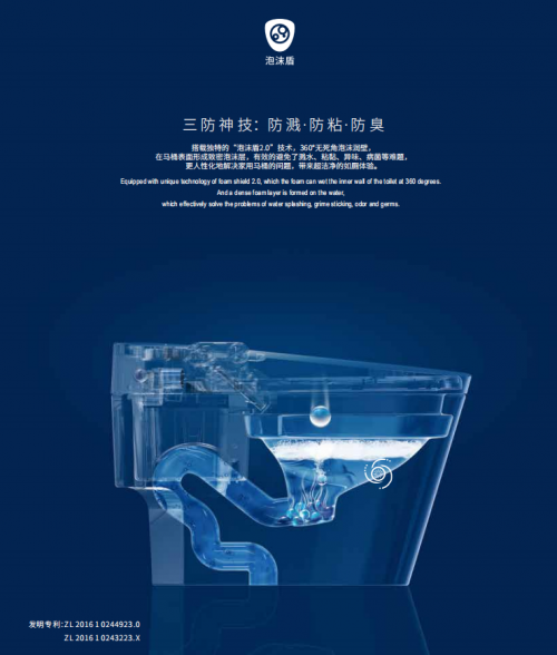 2019年,3.0大健康一體機亮相,同時全新升級了專利泡沫盾技術,進入馬桶不濺水、陶瓷不掛污的泡沫盾2.0時代,進一步把“超潔凈智能馬桶”從概念落到了實處。