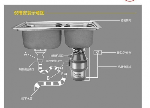 這個比較好說,垃圾處理器是安裝在水槽下方的,選購產品一般都會在下方標注安裝要求,根據機器大小確認需要預留多大的空間,每家每戶的臺下空間都是不一樣的,安裝之前要確保有足夠空間,不然安裝不下再好的產品也是白搭。