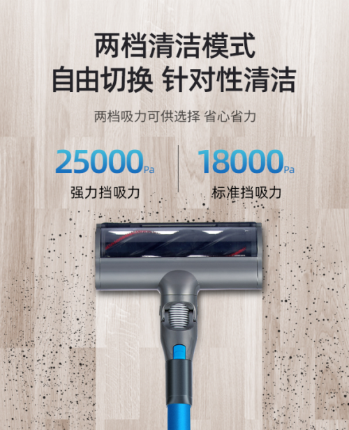 法博萊手持無線吸塵器T8采用強勁無刷電機,吸力最高達25000Pa,為清潔提供強勁吸塵性能,可輕松清除日常灰塵、毛發以及顆粒類垃圾。并且,它還配有強力檔和標準檔選擇,可自由切換進行針對性清潔,讓地面立顯整潔干凈。