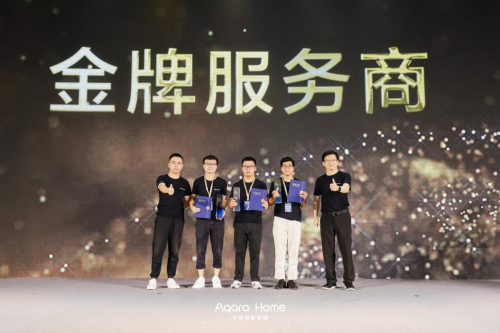 現場還舉行了隆重的頒獎儀式?;诜丈虉F隊在2019年的表現,Aqara分別評選出最佳開拓獎、業績先鋒獎、最佳服務獎和價值觀榜樣獎四大獎項。同時,Aqara還為2019年度表現最為突出的三家服務商授予了“金牌服務商”稱號,他們分別是沈陽服務商黃寶亮、溫州服務商戴忠建和成都服務商孫俊輝。他們在業務一線的點點滴滴將成為所有服務商的榜樣,也將成為智能家居行業深刻的發展印記。