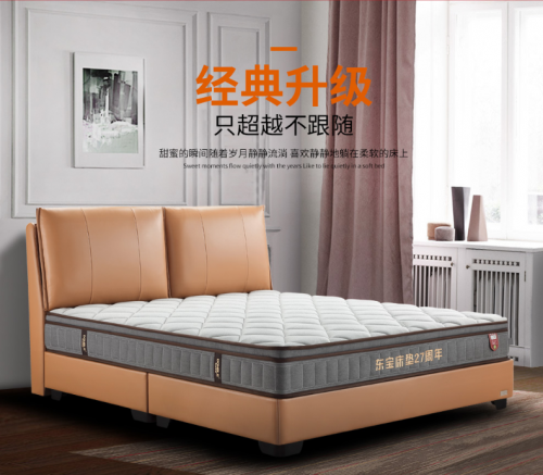 27周年紀念款床墊從面料、填充物到內置彈簧都考究地使用了性價比一級的材質。為了讓床墊的支撐性能更強,在床網上方加了一層環保棉有效保護床網,平衡分散壓力,在乳膠填充層又加了一層高密度、高回彈的海綿,舒適支撐彈性十足,雖然,使用這些材料會無形中增加產品的成本,但是為了讓消費者能夠買到放心、安心的產品,東寶用起來也是毫不吝嗇。因為品質就是品牌的臉面,是企業的安身立命之本。