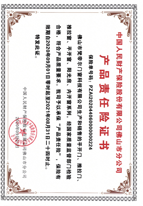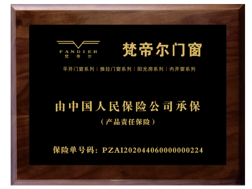 在我國,臺風、地震等自然災害時有發生,即使窗戶質量再好也沒人能保證絕對的、百分百的不發生意外。為此,高端系統門窗廠家梵帝爾攜手中國人民保險公司,承保產品責任險,在安全產品的基礎上再為用戶增加一道額外的財務保障。