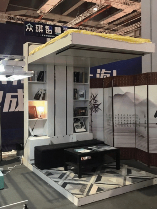 同期,在5.1號館B20展位同期舉辦了創新力品牌成果展,一房秒變多房的眾琪可移動智能閣樓、智能升降床、造型奇特的泡泡屋、七星時代共享裝修平臺軟件悉數亮相,給予游客沉浸式體驗的同時各種各種新奇好玩的家居引得眾多展會游客駐足圍觀。