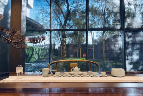 山水疊石、綠樹掩映,樂音浩渺,琴瑟和鳴,琴藝師傾奏一曲古風翩翩,給人一種高山流水、海闊天空的意境。習書作畫,揮毫潑墨,筆畫扇面,將中交·泰合郡的國韻風雅展現的淋漓盡致,還有各色中式小食,演繹古代雅士生活場景的當代復刻,東方審美情趣的廊坊歸位。中交·泰合郡示范區所呈現出的是源起千年的純粹中式藝術之美。