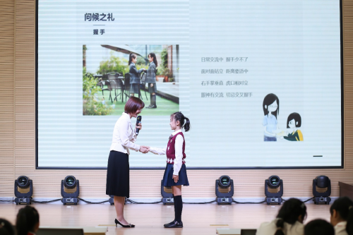 一個瓶子的重生之旅,一件裁損白襯衫的藝術(shù)言說,讓孩子們贊嘆不已。統(tǒng)一的著裝,優(yōu)雅的行為舉止,在潛移默化中浸潤、熏陶著學(xué)生的審美素養(yǎng)禮儀文化、價值觀念,一言一行在禮儀浸潤下顯得更加自信。