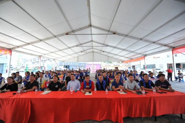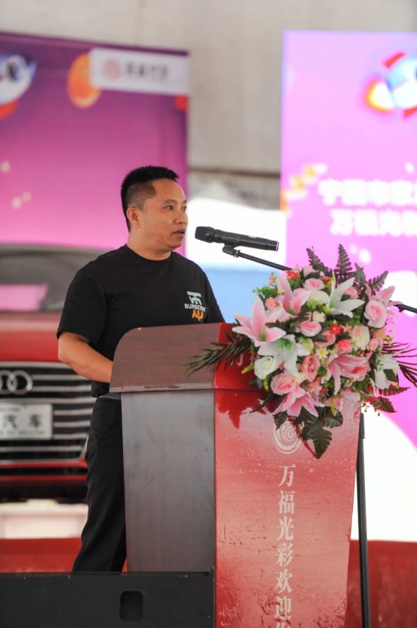 中共萬福光彩大市場黨支部書記、寧國市市場監督管理局開發區分局局長帥昌盛致辭,期待光彩大市場成為讓百姓放心的一站式家居建材專業市場。