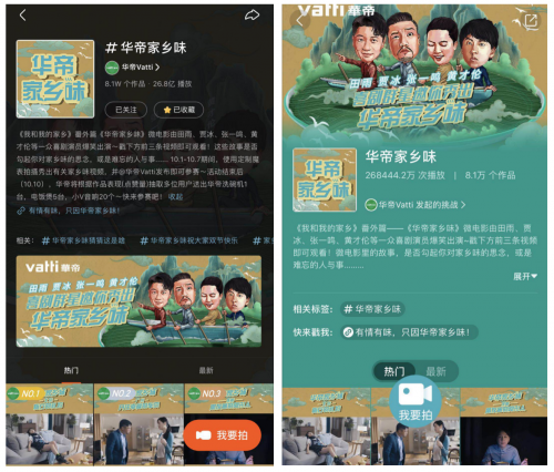 《華帝家鄉味》是華帝借電影展開更具廣度、深度的溫情新顛覆——聚集明星、達人等資源深度演繹家鄉味道,且覆蓋更廣泛的中國范圍。在這次IP聯合活動與系列傳播活動中,華帝以“家鄉味”為載體,從明星出演的品牌微電影到KOL、KOC參與的快手同名魔表挑戰賽,使用#華帝家鄉味#話題標簽層層滲透,不僅想通過智能套系廚電表達能烹飪出一道道香濃家鄉菜的專業,更是融合在人與人之間的家鄉味道與情懷。