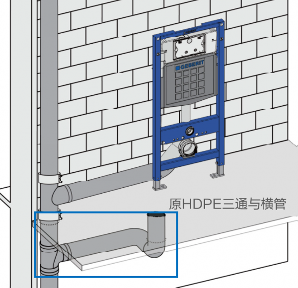 如果主管道是PVC或者HDPE的材質,這種情況的改造要點為四個字:廢舊立新。摒棄樓板下的三通和支管,通過三通將隔層排水變成同層排水。
