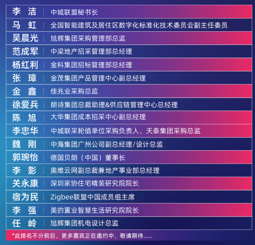 今年,除了特邀旭輝、中梁、金科、金茂等眾多房企領軍人親臨現場,分享地產供應鏈價值中樞的戰略思考之外;還有中城聯盟、Zigbee聯盟、知名行業研究機構奧維云網等眾多行業協會、研究機構蒞臨參會,帶來最精準的行業發展趨勢及政策預期研判。