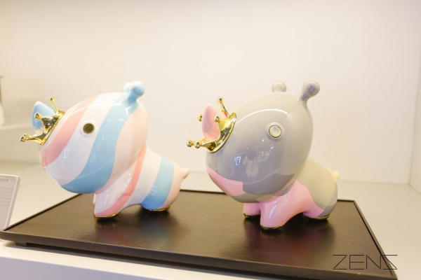 創新亮點1,是ZENS哲品與著名跨界設計師蔣友柏首次聯名合作,推出一系列茶寵精靈、馬克杯及藝術擺件。