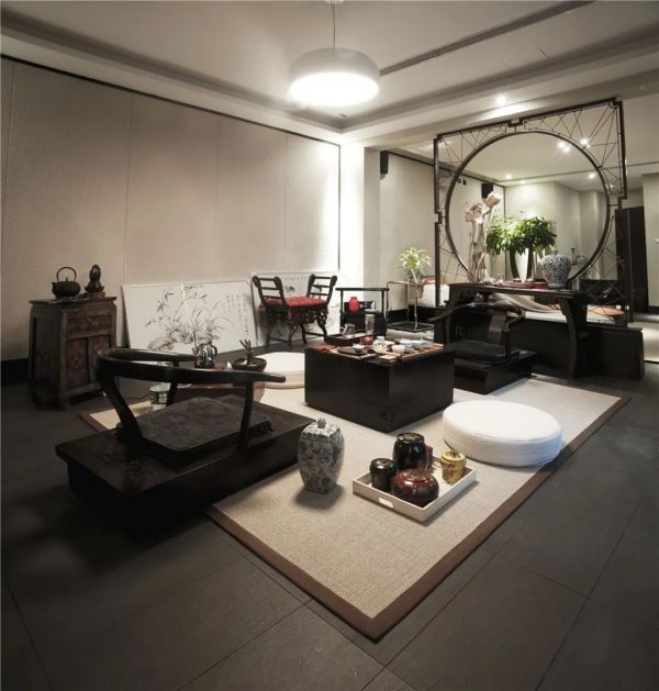 室內是兩扇竹墻隔出的空間,正中間放著矮矮的方幾和蒲團,窗前是一具古箏。閑來無事還可以靜下心來彈彈古箏,舒緩平日里的緊張情緒。