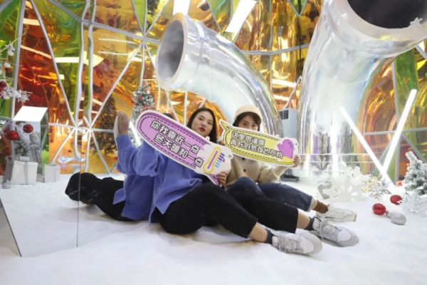 冠珠“至IN智暖家”快閃店以多彩絢麗、夢幻的外觀設計,彰顯著出眾的時尚感。乍一看,快閃店猶如被一層半透明糖果紙包圍,讓這股時尚又增添了些許的神秘感,對于愛新鮮、有探索精神的年輕人而言,這無疑有著巨大吸引力。