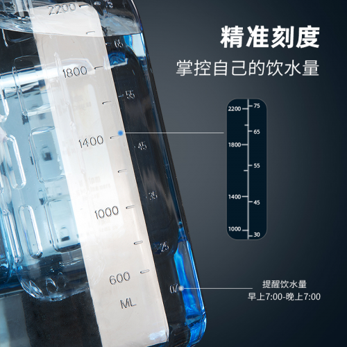 BOTTLED JOY水壺的外形采用仿古羅馬造型多切割設計,整體線條簡潔流暢,造型經典耐看,十分具有時尚感。而且,它還具備2200ml超大容量,且還貼心標注了從早上7點到晚上7點的喝水刻度,可以高效滿足運動人士的喝水需求。