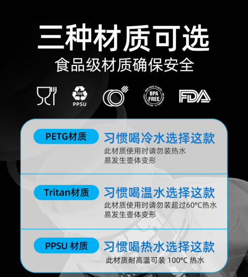 另外,BOTTLED JOY水壺的材質(zhì)選擇也十分嚴(yán)苛。它采用歐美進(jìn)口的PPSU,屬于兒童食品級(jí)接觸材料,同時(shí)還通過(guò)了FDA認(rèn)證,對(duì)人體無(wú)毒無(wú)害,也不會(huì)產(chǎn)生異味。而且,這一材質(zhì)還具備強(qiáng)大的柔韌性,耐摔耐磨,即便是戶外健身攜帶也十分有安全感。
