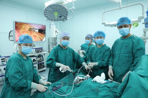 張女士被診斷為“雙側卵巢低級別漿液性腺癌”,需行“卵巢癌腫瘤細胞減滅術”,但其年紀較輕,未婚未育,能否保留以及如何保留生育功能是制定手術方式的關鍵;在充分的準備下,何主任帶領婦科專家,與手術室麻醉科的醫生護士共同努力,順利開展“腹腔鏡下雙側附件切除術+腫瘤細胞減滅術+大網膜切除術+盆腔淋巴結清掃術”,并保留子宮。