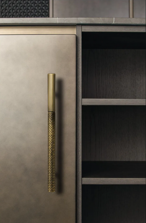 這一點在經典的幾何形紋樣造型中尤為明顯,即選用簡單的線條為設計元素,進行標準極簡主義幾何處理,讓交叉的線條產生化學作用,進行有規律的重復,循環和連續的應用,成為現代家具節奏與韻律美的體現,加以多重拋光工藝賦予其近乎完美的色澤,形成五金拉手獨有的品味設計。