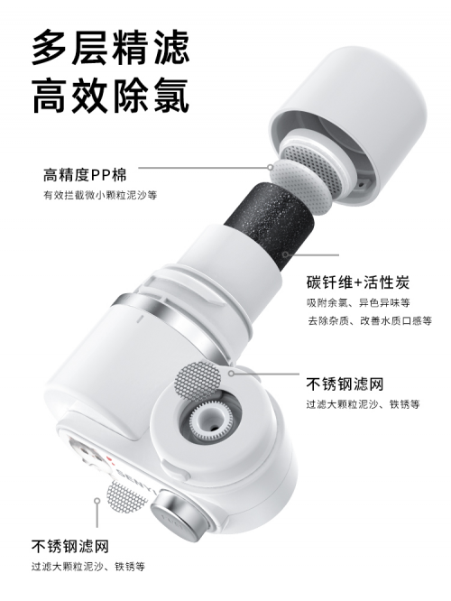 森意V01A水龍頭凈水器,采用V01A碳釬維濾芯,由雙層不銹鋼濾網+雙層PP棉+優質活性炭+碳纖維組成的6重深度凈濾濾芯,其中,優質碳纖維活性炭吸附力極強,能有效吸附水中余氯/異味/有機物等,其除率技術榮獲權威機構認證檢測,除氯率高達99%。在強力凈化飲用水質的同時,有效祛除細菌病毒,在這個疫情肆虐的特殊時期,能夠降低病毒感染概率,為全家人提供健康水生活。