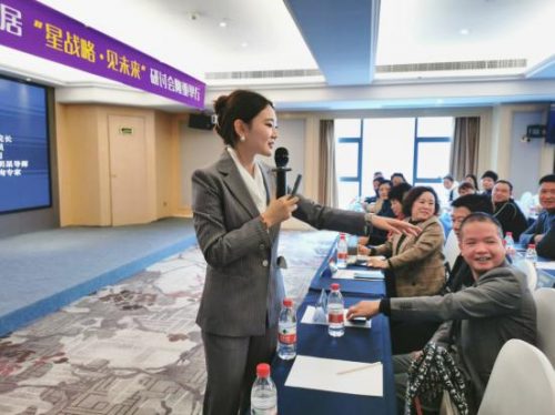據潘總介紹,2021年,迪卡家居進一步完善了終端服務體系,對現有經銷商服務全面升級。在會上,迪卡家居商學院正式亮相,與其它商學院不同的是,迪卡家居商學院在龐老師的帶領下將全面深入到終端市場中去,走進專賣店,精準培訓到每一個迪卡家居的經銷商和導購。手把手幫助他們成長,帶領經銷商不斷做大做強。