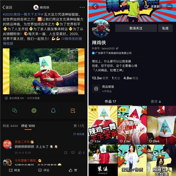 產(chǎn)品血液里擁有爆品基因的“辣雞俠”薯片,無疑會在品牌營銷上對零食市場發(fā)起一場‘降維打擊’。如2020年的“辣雞一舞”事件營銷,就在線上引起了巨大的反響。在接近零廣告費用投入的情況下,獲得全網(wǎng)3千萬觀看及數(shù)百萬點贊互動,通過IP賦能產(chǎn)品,高效地解決線上線下的品牌推廣及動銷難題。