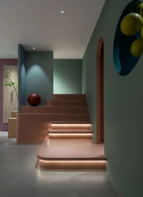 設計師對色彩的揣摩、弧形的演繹,賦予了兩個空間之間更多探索的可能性,讓顧客沉浸其中。