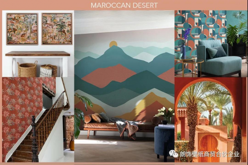 基里姆毯的紋樣在壁紙中屢見不鮮, 由緊密的經線和緯線編織而成,形成各種各樣的幾何圖型。紋樣多為游牧民族用來庇佑家人財產、躲避災禍疾病的護身符號。每一張都是由匠人純手工編織而成,選用其做家庭裝飾彰顯出主人的非凡品味。