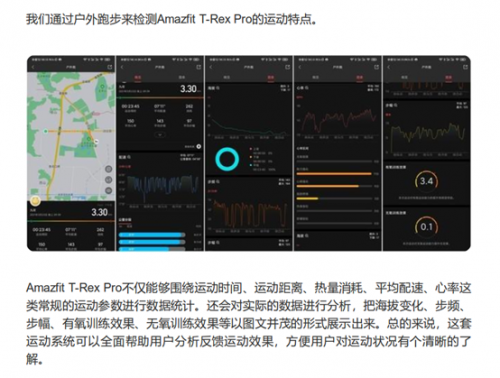 作為華米的最新戶外旗艦,Amazfit T-Rex Pro 功能配置同樣具有不俗的表現,尤其在運動功能上有著非常大的突破,媒體對此也是贊不絕口。知名科技媒體「中關村在線」在評測中提到,Amazfit T-Rex Pro 擁有非常棒的運動表現,100 米防水等級、 100+ 運動模式,以及“四星三模”定位系統讓他印象深刻,表示:“Amazfit T-Rex Pro的這套運動系統可以全面幫助用戶分析反饋運動效果,方便用戶對運動狀況有個清晰的了解。”