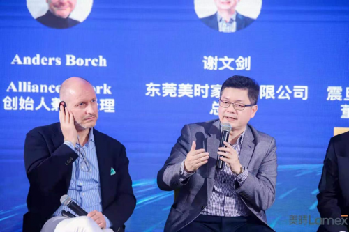 在開幕式上,Lamex美時總裁謝文劍先生作為中國家具協會辦公家具專業委員會執行主席受邀參加IFO開幕式,辦公家具專委會2021年會及“對話丹麥,望眼世界“2021辦公設計展望論壇的圓桌對話環節。與多位行業代表就辦公家具行業目前的熱點問題展開了討論,包括疫后變化、電商發展、環保轉型、空間塑造等,其中,辦公家具企業的服務創新成為大家的重要關注點。謝總裁表示美時家具都是從“人”的需求出發,加強研究與設計,從而在產品和服務實現差異化,與人共情,隨著網絡辦公已打破時間、地點的限制,辦公場所將成為以共同創造、協作和生活學習而設的“鄰里社區”。