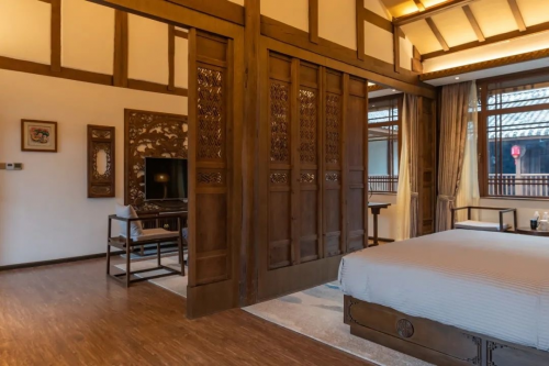 滿足城市人的“鄉(xiāng)愁”情懷是泊心云舍的基本功能,而以此支點撬動民宿產(chǎn)業(yè)的蓬勃發(fā)展,才是它最大的能量。短短4年,泊心云舍從大理輻射到麗江、三清山、香格里拉,分別開設(shè)了大理泊心云舍·MCA、麗江泊心云舍·文苑、三清山泊心云舍·山墅、香格里拉泊心云舍·稿公府四家分店。
