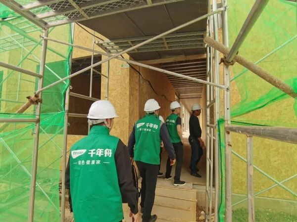 2021年4月20日,千年舟綠色工程行公開檢測項目再次啟動,走進由安徽乾業建筑工程有限公司承建的安徽杰愛新材料股份有限公司綜合樓項目,該項目是用千年舟OSB/3型板材建造的輕鋼別墅。