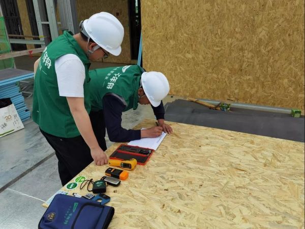 由千年舟集團、服務商、施工方、甲方共同組成的公檢人員開始對此次輕鋼別墅項目所使用的OSB/3型產品進行了檢測。此次檢測從板材的密度、含水率、靜曲強度、握螺釘力,甲醛釋放量等方面進行了全方位的檢測,整個過程公開公證,為消費者提供了品質產品和誠信服務的體驗。