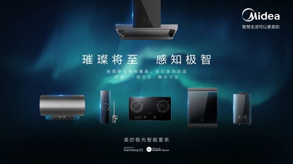 美的極光套系以智能灶、油煙機、洗碗機、電熱水器、燃熱水器、凈水器為核心的家居全場景家電組合,跨界搭載 HarmonyOS 2.0系統,為用戶帶來全新智能交互體驗。可實現碰一碰即可3秒配網,烹飪、洗漱等同步進行,大大縮短時間,讓忙碌的早晨更高效,讓懂你的智慧生活從碰一碰開始。