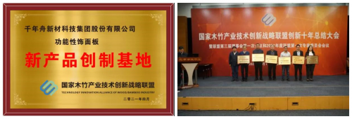 為推進無醛人造板的生產和應用,引導木竹產業創新發展, 千年舟集團與寧波中科朝露新材料有限公司等5家聯盟成員單位聯合行動,舉行了“無醛豆膠技術應用”簽約儀式。此次簽約儀式與千年舟集團一直推舉的“無醛板材”響應,助力千年舟“無醛板材的”發展。