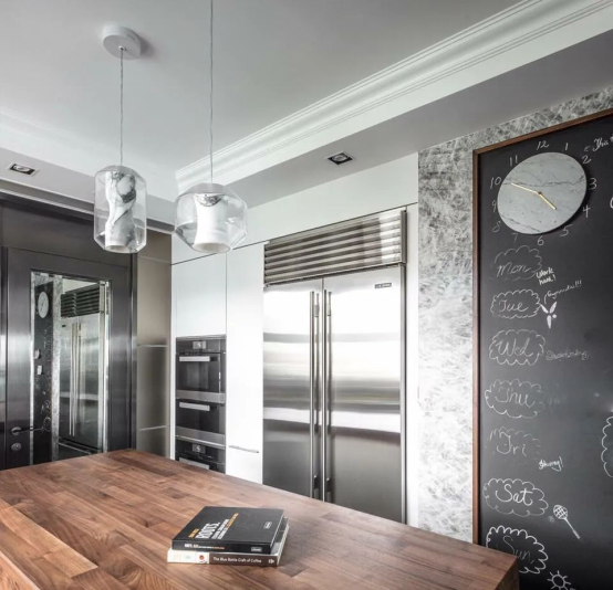 ▲開放式廚房采用嵌入式櫥柜及家電,打造一體式簡潔空間
