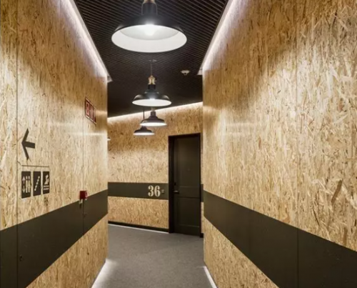 澳思柏恩OSB的另一個很酷的用途是裝飾墻面。具有豐富肌理感和幻變感的視覺效果,賦予了該材料大面積縱向使用的天然屬性,OSB上墻絕對設計感爆表。