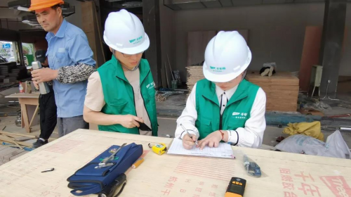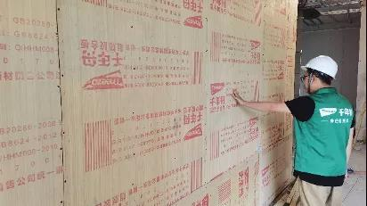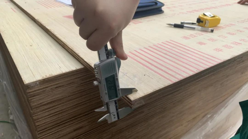 ▲現場檢測阻燃膠合板的厚度