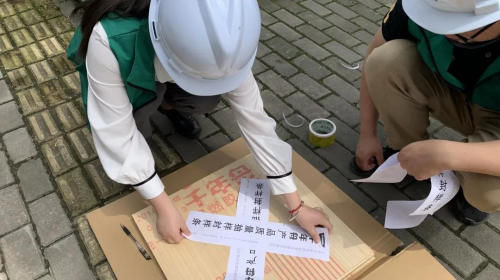 ▲對抽檢產品樣塊進行封存,送至檢測機構檢測