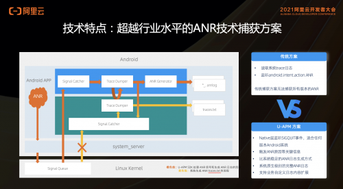 李成亮表示,傳統方案主要是通過監控手機上的日志來監控,但傳統方案實際上是有些問題的。一大問題就是如果日志生成出問題,則捕獲不到ANR;還有一個問題是監控時可能ANR的場景已經發生完了,生成日志所處的環境實際上已經靠后,就有可能錯過了ANR的真正發生的時期。