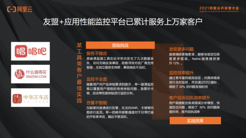 5月28日--29日,"2021阿里云峰會暨阿里云開發者大會"在北京國家會議中心舉行,此次峰會以“云上創新”為主題,阿里云與眾多嘉賓、合作伙伴共同探討了企業數字創新的新思路、新策略、新產品、新方案,展開“云上創新”的全景圖。會上,友盟+高級技術專家李成亮帶來了“如何保證移動應用穩定性”這一議題的分享。