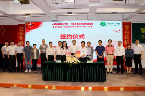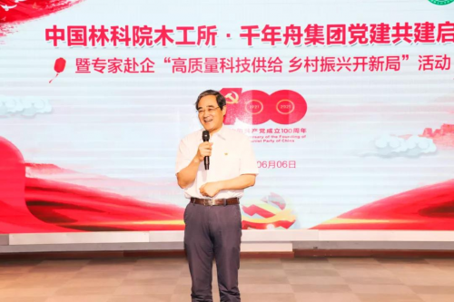 為實(shí)現(xiàn)黨組織優(yōu)勢(shì)互補(bǔ),以黨建促進(jìn)鄉(xiāng)村振興事業(yè)發(fā)展,充分發(fā)揮黨組織和廣大黨員推動(dòng)發(fā)展、凝聚人心、促進(jìn)和諧的作用,努力構(gòu)建“資源共享、優(yōu)勢(shì)互補(bǔ)、互相促進(jìn)、共同提高”的黨建工作新格局,6月6日上午,中國(guó)林科院木材工業(yè)研究所黨委與千年舟集團(tuán)黨委結(jié)對(duì)共建啟動(dòng)儀式暨專家赴企“高質(zhì)量科技供給·鄉(xiāng)村振興開新局”活動(dòng)在千年舟集團(tuán)總部舉辦。