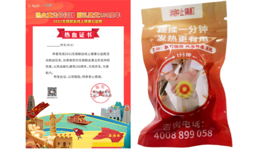 2021年6月14日是第十八屆世界獻血者日,今年的主題為“獻血,讓世界繼續跳動”。恰逢黨成立100周年,為推動無償獻血的公益事業,鼓勵、帶動更多的人參與到無償獻血行動中來,2021年6月14日由熱血跑組委會、深圳市血之緣公益基金會聯合32座城市共同發起“熱血重走長征路·獻禮建黨100周年”2021無償獻血線上健康公益跑活動,花紅藥業及15家愛心企業公益助力了本次活動。