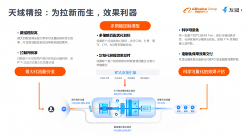 此外,基于阿里巴巴的技術(shù)能力,友盟+再次打造了專(zhuān)為用戶(hù)增長(zhǎng)而生的工具:天域精投。天域精投可以基于數(shù)據(jù)能力和媒體開(kāi)放的RTA能力,幫助客戶(hù)進(jìn)行效果投放和拉新。