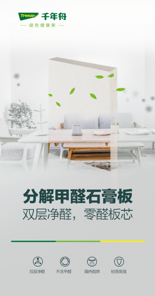 優質凈醛板材則將環保板材的特性與凈醛功能相結合,例如千年舟旗下分解甲醛石膏板,采用本身不添加甲醛的優質石膏板芯和優質原木護面紙,同時能夠強效吸附甲醛并進行不可逆分解。不僅無醛,還能除醛。此外,分解甲醛石膏板擁有優異的物理性能,蜂窩發泡結構,輕質高強;防火阻燃,配合輕鋼龍骨可實現A級防火阻燃然要求;空腔結構,孔結構分布適當均勻,還能保溫隔音。