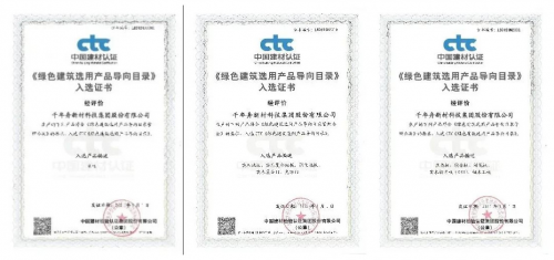經過第三方嚴謹審核,千年舟生態板、膠合板、刨花板、OSB板、細木工板五類板材;實木地板、實木復合地板、強化地板三類地板;免漆門、實木復合門兩類木門;以及衣柜等產品均符合相關綠色建材認證標準,更曾多次獲得《綠色建筑選用產品》等相關證書。