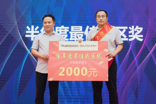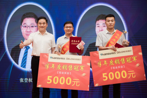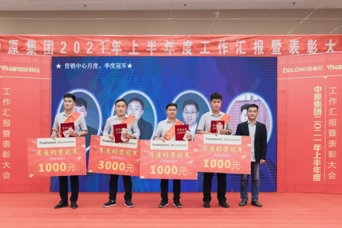 本次總結表彰會上,中原集團董事長韓勇對半年度銷售冠軍張登權、范紫豪家人進行了現場連線,對兩位半年度冠軍的業績表示贊揚。