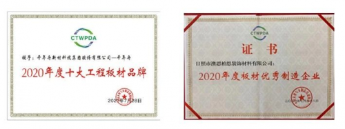 大會(huì)現(xiàn)場,千年舟榮獲“2020年度十大工程板材品牌、2020年度優(yōu)秀板材制造企業(yè)、中國板材國家品牌”三大獎(jiǎng)項(xiàng);千年舟集團(tuán)旗下澳思柏恩榮獲“2020年十大刨花板品牌、2020年度優(yōu)秀板材制造企業(yè)”兩大獎(jiǎng)項(xiàng)。碩果累累,再次刷新品牌榮譽(yù)榜!