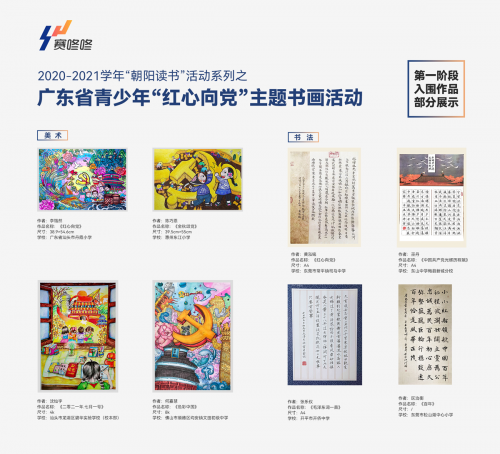 2020-2021學年“朝陽讀書”活動系列之廣東省青少年“紅心向黨”主題書畫活動是由廣東省教育系統關心下一代工作委員會聯合廣東《文化參與報》大美術周刊、“賽咚咚”賽事平臺舉辦的主題書畫活動。據了解,廣東省青少年“紅心向黨”主題書畫活動投稿熱情“嗨翻”了學生的整個暑假,全省學校/藝培機構學生掀起了美育藝術創作大熱潮。