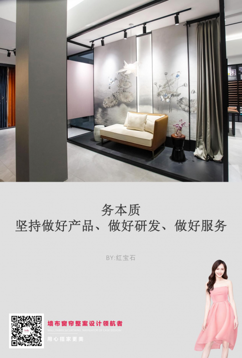 紅寶石并非最早進入墻布市場的企業,更是窗簾領域的后生,但我們開創了多個行業先河。首先是行業第一個推出“產品質量&環保”險的企業,同時研發“彩經工藝”,將墻布的色彩美學提升到與壁紙媲美的水平,也算是對行業作出了應盡的貢獻。